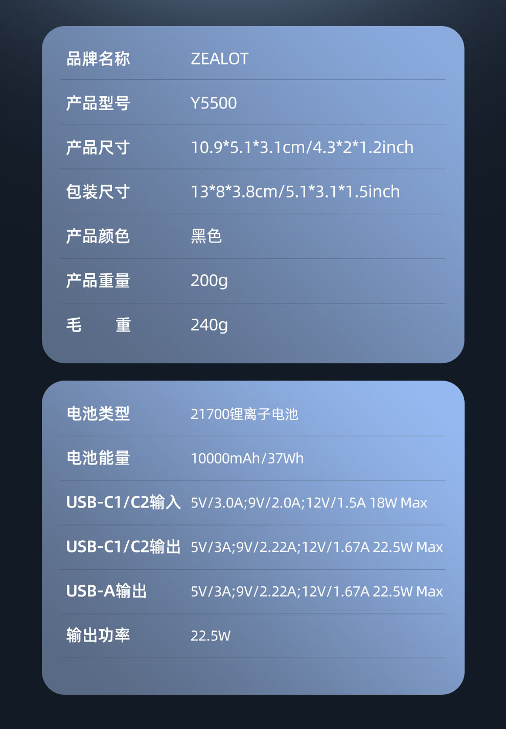 狂热者Y5500 移动电源 充电宝