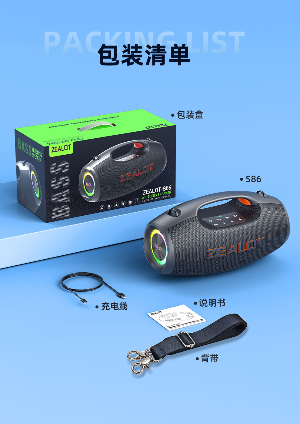 狂热者S86便携式蓝牙音箱